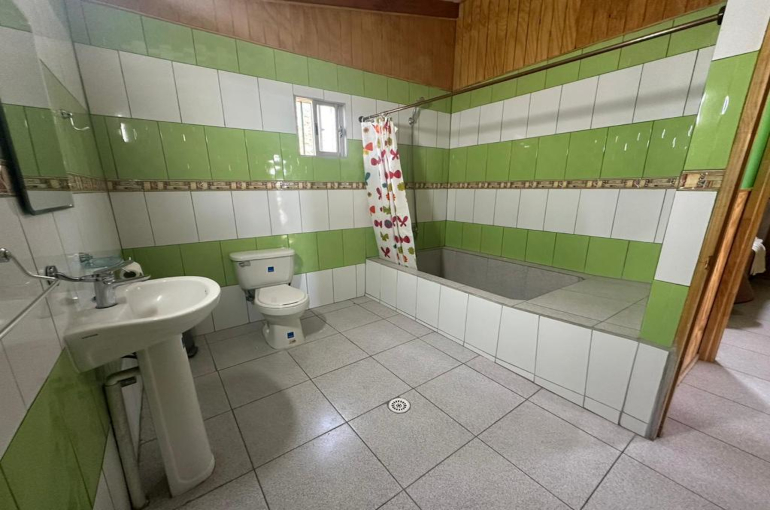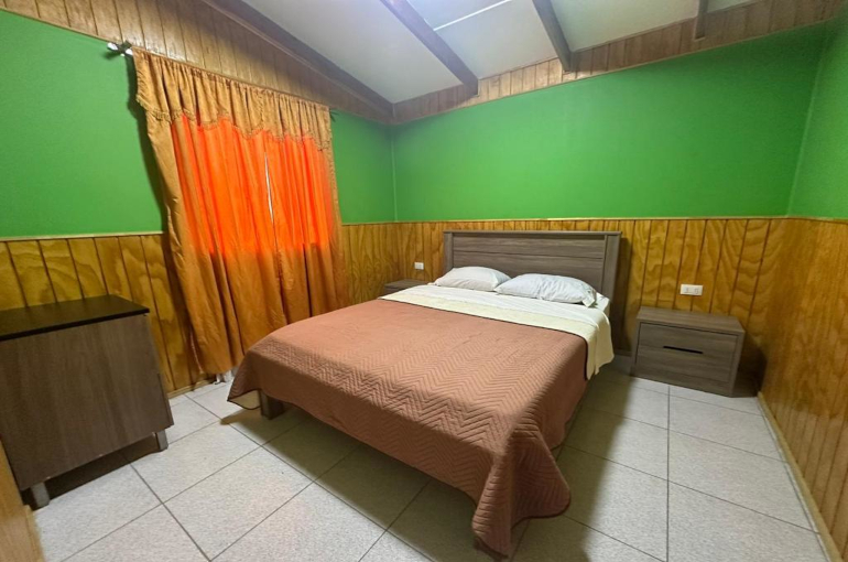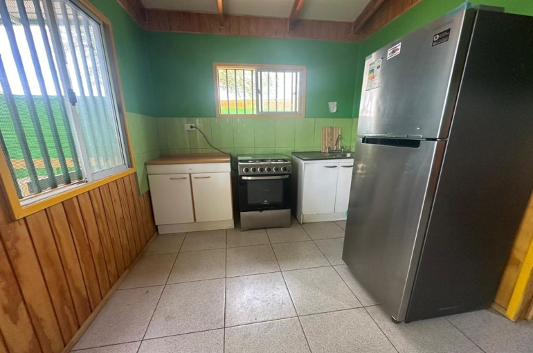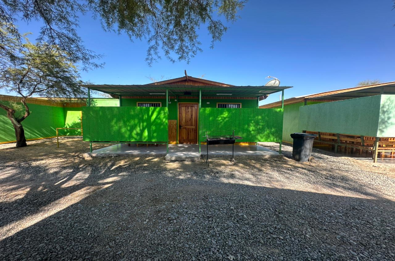 La cabaña para 4 personas cuenta con una cama matrimonial y litera, television satelital , cocina equipada con lavaplatos y refrigerador, baño y ducha con agua fría y caliente, terraza exterior, parrilla y estacionamiento techado a un costado de la cabaña.